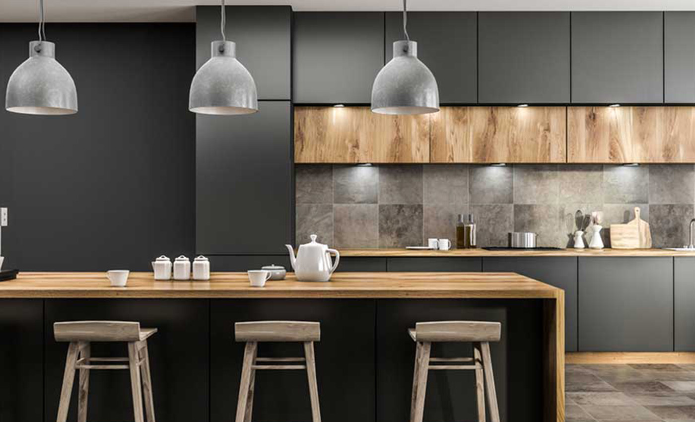 Kitchen specially made by Green Lam AFX Laminate, which has been specially treated to make the surface impression free non porous. Scratch resistant and hydro repellent, making it effortless to clean away impurities.