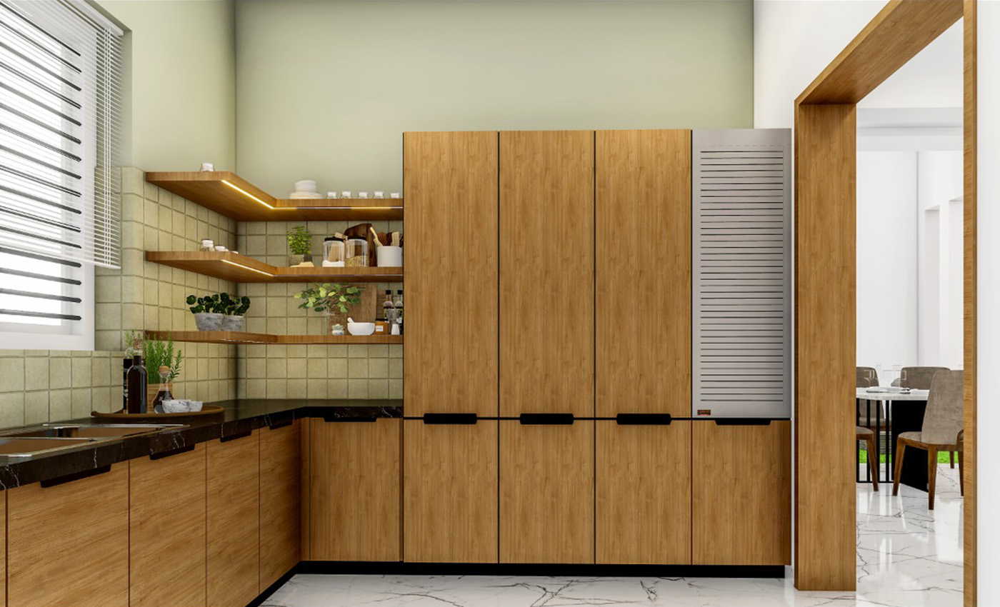 Laminate kitchen cabinets are more muted and less striking. The variety available in laminates for kitchen is higher and includes matte, glossy and ultra high gloss. Apart from colours, these are also available in various textures, including wood. Laminates are also moisture- and heat-resistant.