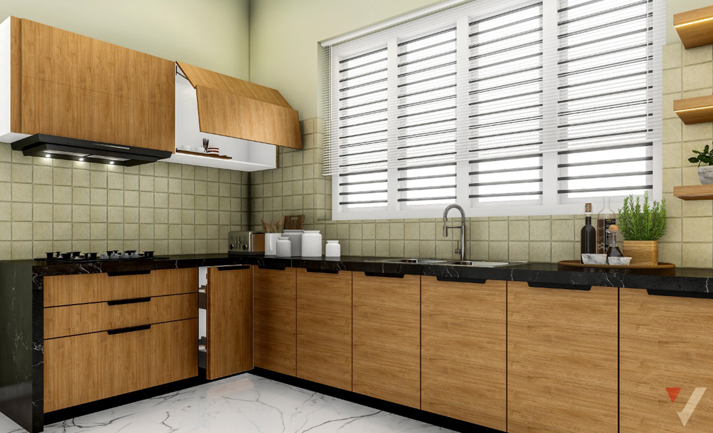 Laminate kitchen cabinets are more muted and less striking. The variety available in laminates for kitchen is higher and includes matte, glossy and ultra high gloss. Apart from colours, these are also available in various textures, including wood. Laminates are also moisture- and heat-resistant.